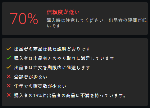 信頼できる販売者は取引を成功させる鍵である。残念ながら、2025年、アリエクスプレスのウェブサイトは、ショップの切り捨てられた有益でない評価しか提示しない。誠実な売り手を見つけるには、その商品のレビューをたくさん調べる必要がある。また、無料のブラウザ拡張機能AliHelperをインストールすれば、5つの基準に基づいてショップの客観的で詳細な評価を表示することができる。詳しくは「Aliexpressでセラーを評価する」をご覧ください。