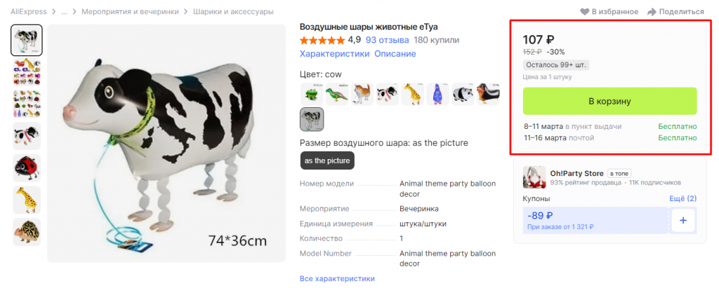 - Если в блоке указаны даты и стоимость доставки, значит вы сможете заказать этот товар.